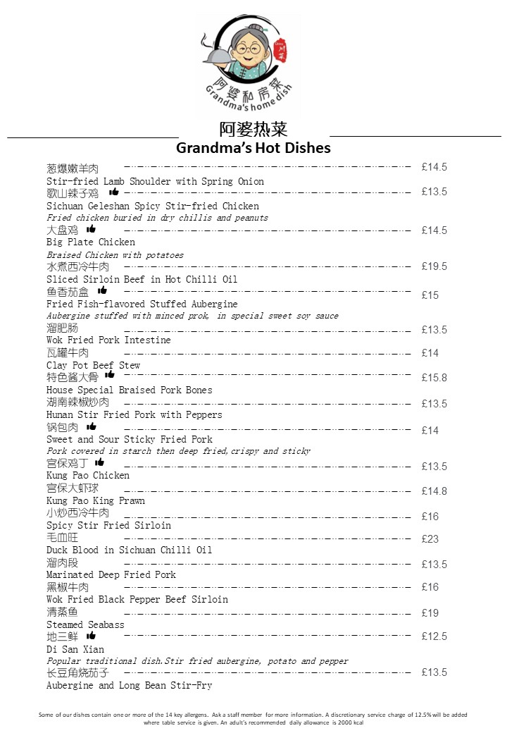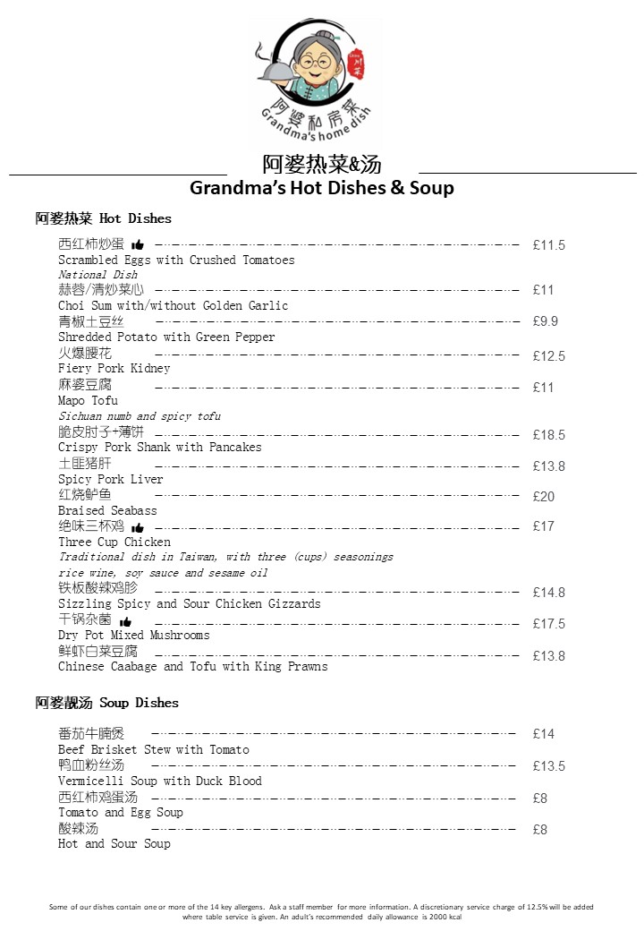 Grandma's Food & Bar 阿婆私房菜 Menu